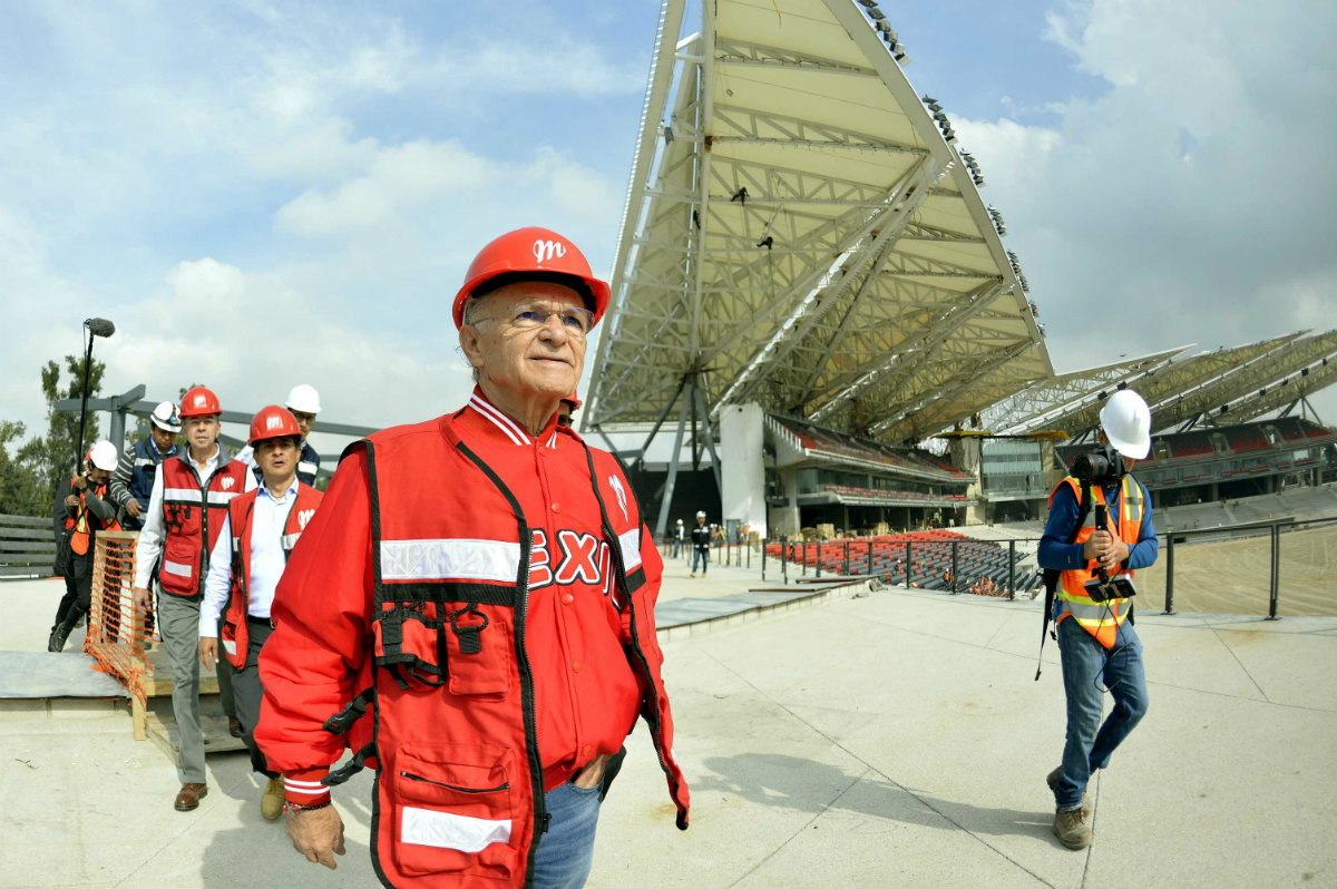 Después de visitar la semana pasada las obras de construcción del Salón de la Fama del Beisbol Mexicano, en Monterrey, Alfredo Harp Helú acudió al Autódromo Hermanos Rodríguez para conocer los avances de la otra joya que prepara, el nuevo estadio de los Diablos Rojos. Y muy distinto es como encontró este lugar. A pesar de que gusta tener actividad en las redes sociales, dando retuits y likes a las fotos que se publican del inmueble, Harp Helú conoció en persona el porcentaje de avances que se tienen en esta construcción, desde los trabajos que se están haciendo en las tribunas como lo que ya se tiene armado en otras áreas, como los clubhouses y los palcos.