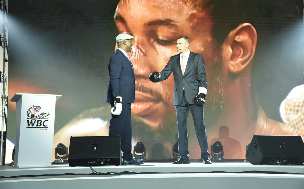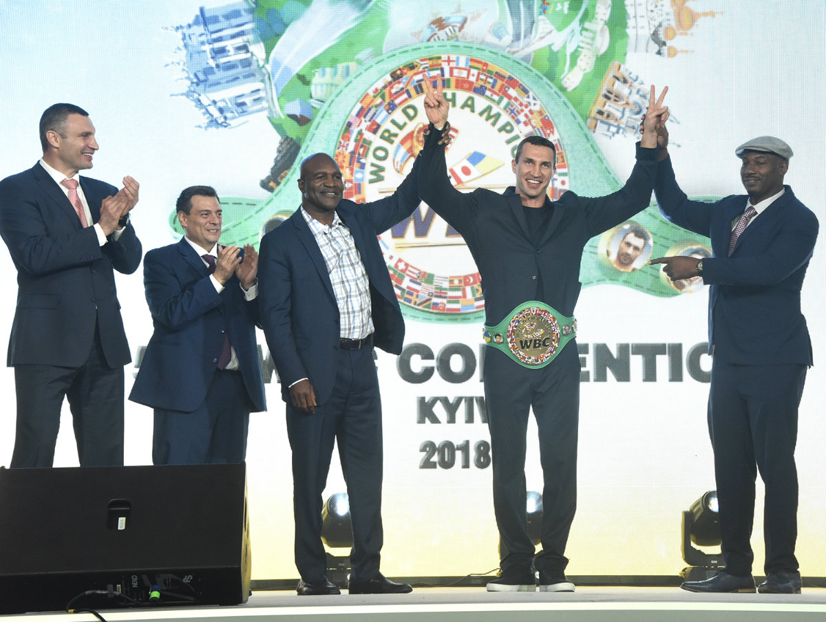 Dr Steelhammer, como se le conoció a Wladimir en el boxeo durante su reinado de más de 10 años como campeón de peso completo, recibió de manos de Evander Holyfield y Lennox Lewis el único cinturón que no disputó cuando estaba en activo.