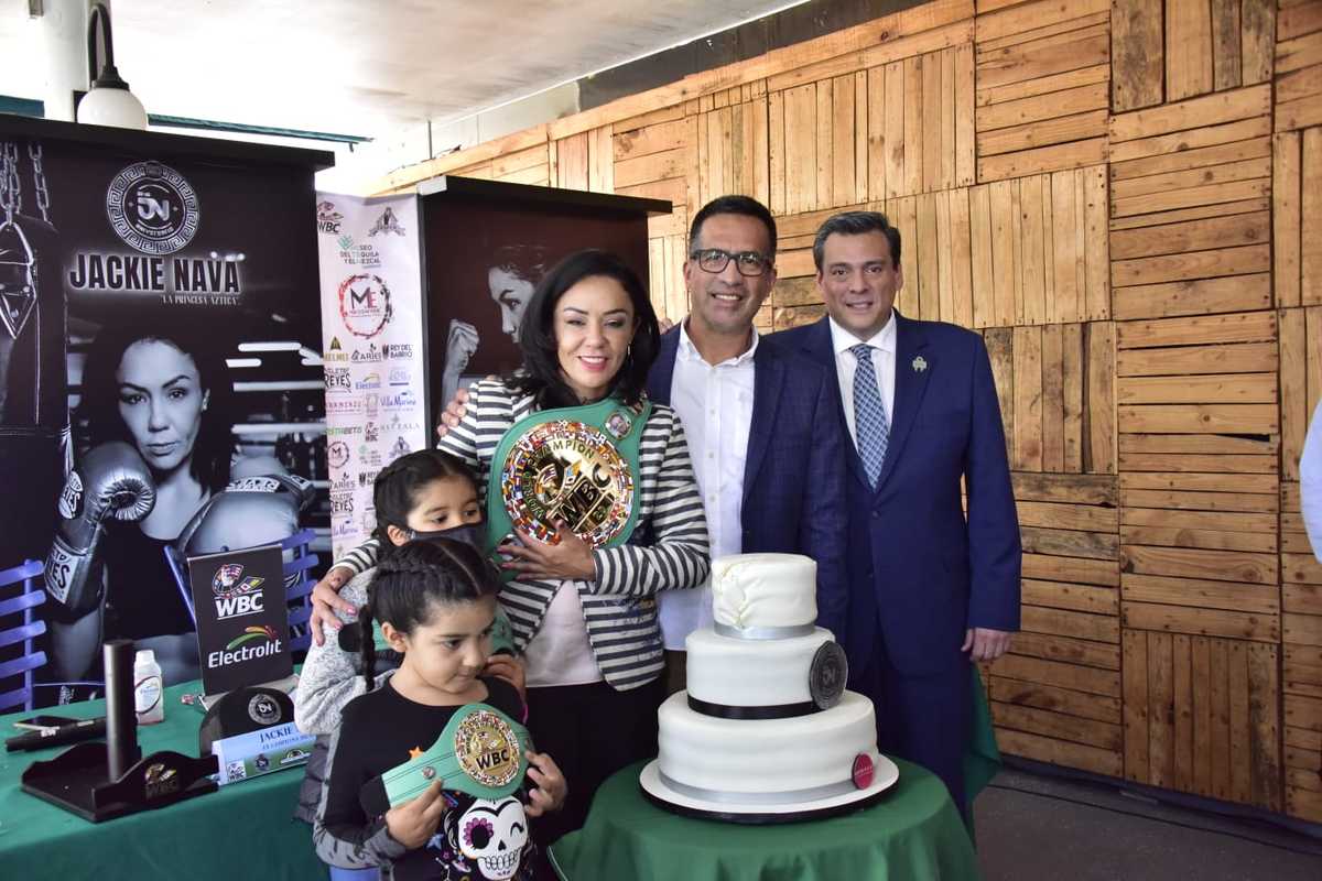 En compañía de sus hijas y su esposo, Mario Mendoza, la multicampeona mundial mexicana Jackie Nava festejó 20 años de carrera profesional.