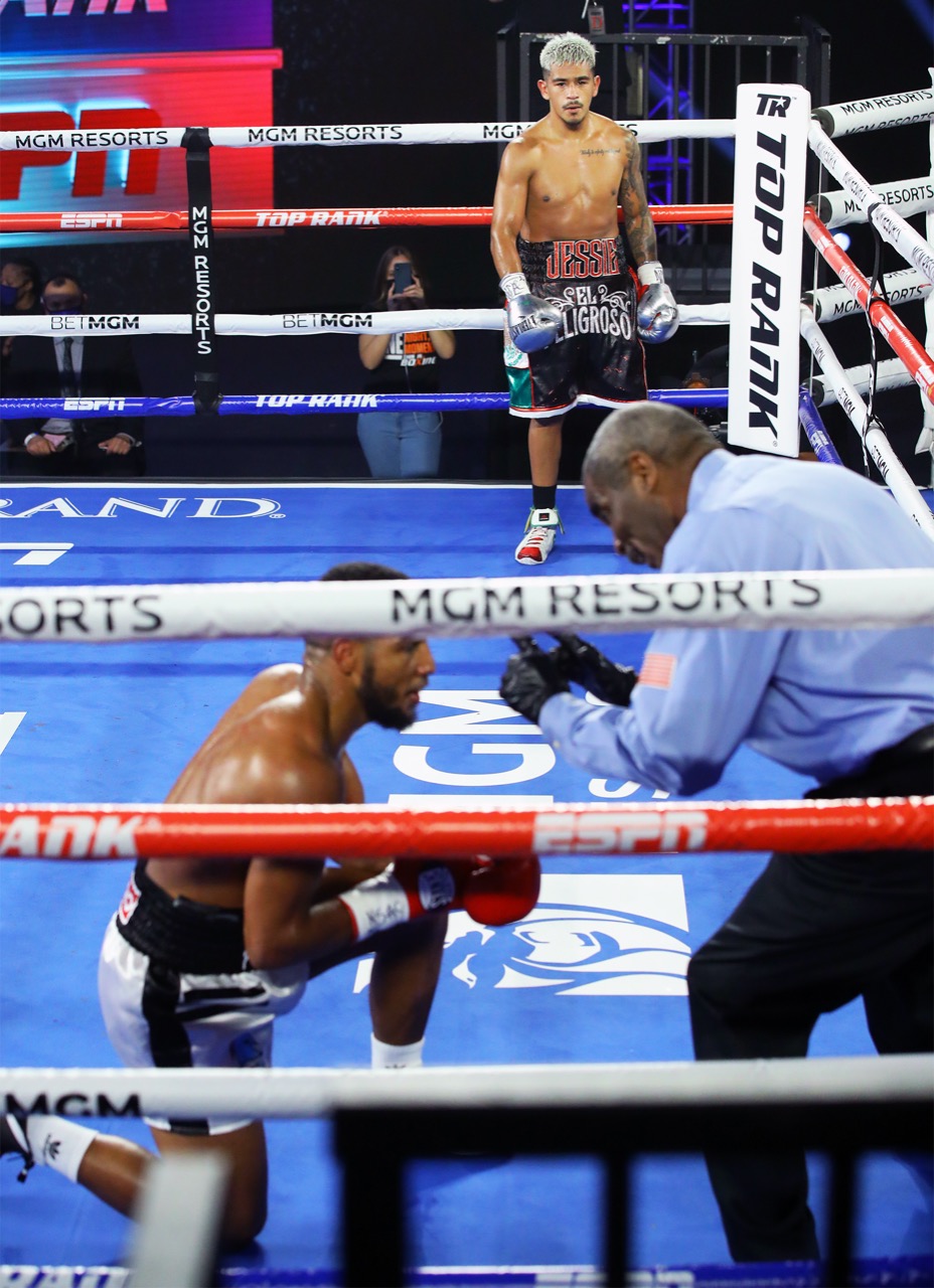 Cuatro puntos menos por golpes bajos no fue suficiente para que el dominicano Yenifel Vicente entendiera que no sería la forma para poder recuperarse en las tarjetas y con una descalificación sumó su quinta derrota profesional ante el ex campeón Jessie Magdaleno.