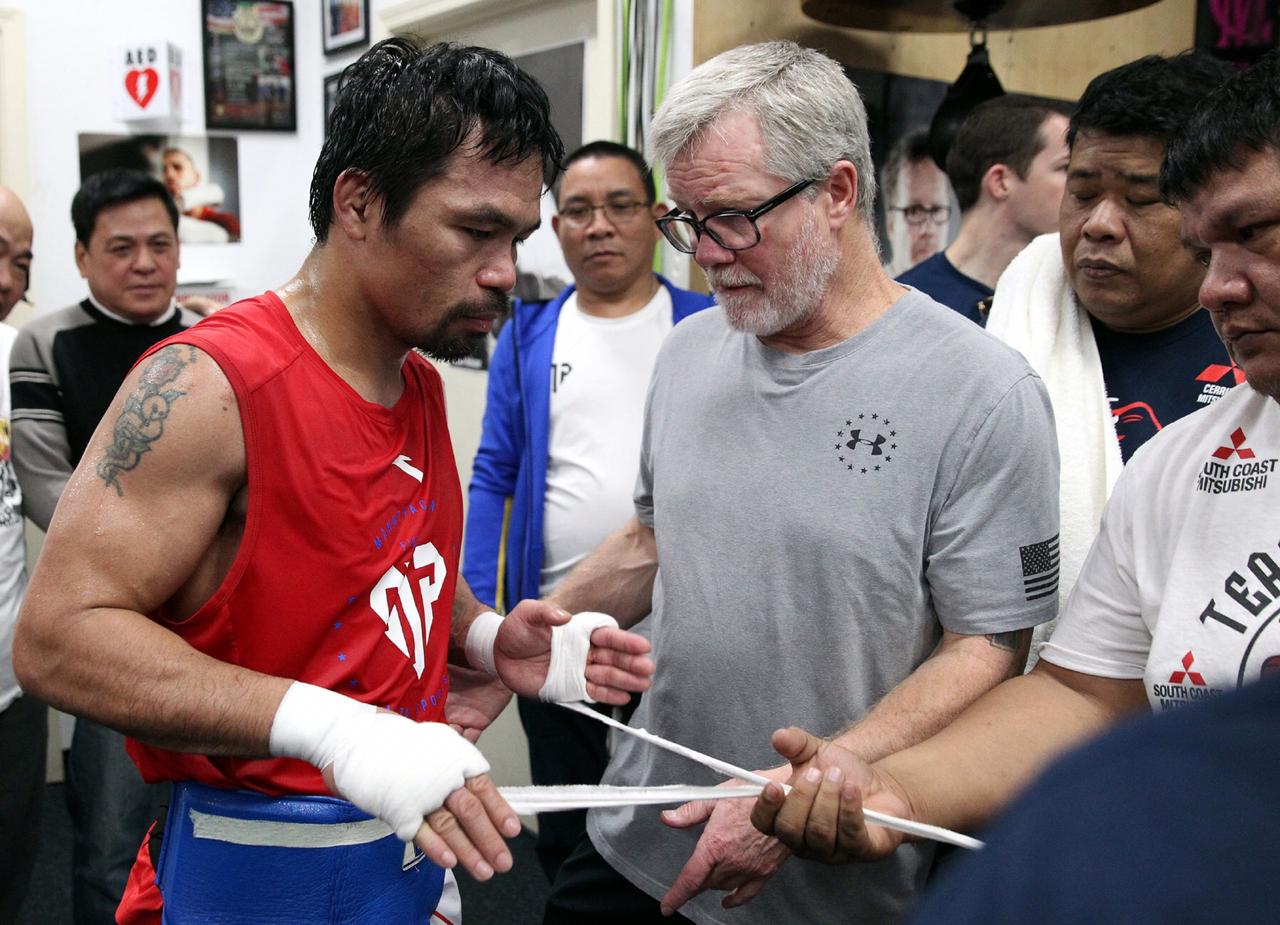 "Si bien el tiempo no perdona a nadie, no veo como alcance a Manny Pacquiao. Vamos pelea por pelea y siempre con esa promesa que le hice algunos años atrás. Yo le dije que si veía señales de que comenzaba a bajar su nivel le diría y se retiraría. Pero por lo que he visto para esta preparación no ve la forma de que se dé. Vamos a ver cómo se ve Manny", declaró Freddie Roach, el entrenador miembro del salón de la fama quien después de dos años de no hablar con el tagalo volverá a su esquina.