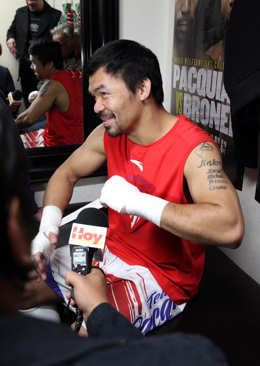 "Adrien Broner es de esos peleadores a los que no tienes que subestimar, no hay que confiar de ellos. Es rápido, se sabe mover y es fuerte. Por eso me enfoco en mi campo de entrenamiento que va de maravilla. Estoy pensando solo en este 19 de enero. quiero ir poco a poco, no quiero hablar del futuro", declaró el filipino.
