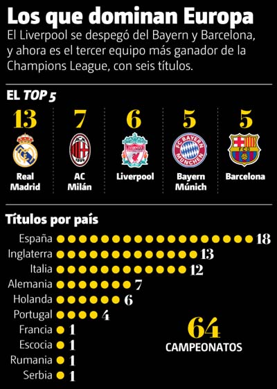 Con el título de ayer, el Liverpool se despegó del Bayern Múnich y el Barcelona son seis Orejonas; está a uno del AC Milán.