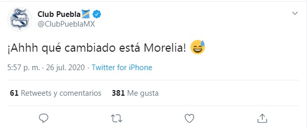 Fieles a su estilo, la Franja envió un mensaje tras su arribo al estado de Sinaloa, publicando un mensaje en sus redes sociales alusivo al Morelia, equipo que vendió su franquicia al nuevo inquilino del máximo circuito: “¡Aaah qué cambiado está Morelia!”, escribió con sarcasmo el Puebla.
