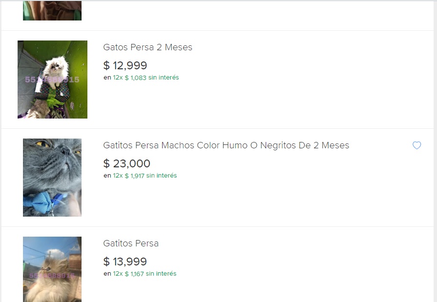 Debido a sus particularidades y origen, los gatos persa suelen ser costosos, pues llegan a valer casi 20 mil pesos en internet, y son puestos a la venta desde edad muy temprana. En sitios como Mercado Libre, esta especie llega hasta los 23 mil y el más barato se ofrecido en 14 mil.