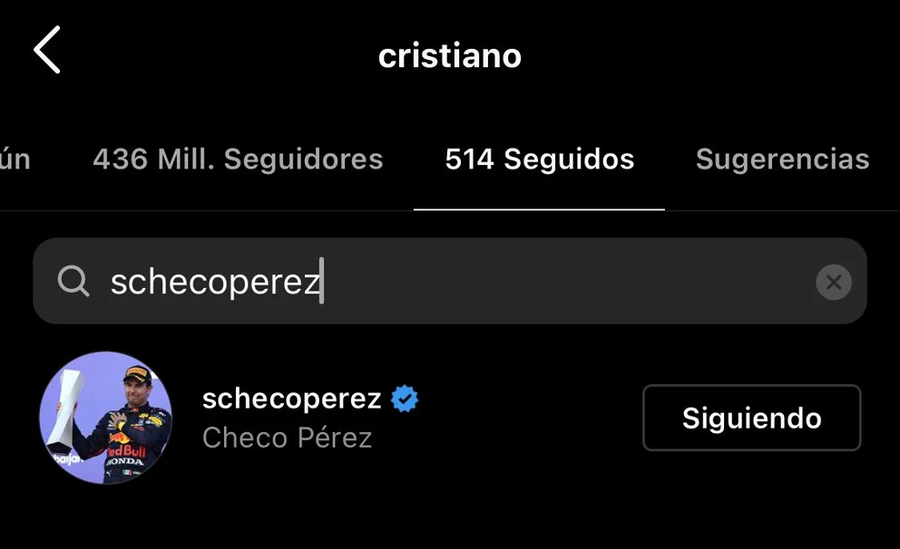 Checo se convirtió en el segundo mexicano en tener el follow de Cristiano; el otro atleta azteca es el boxeador jalisciense Saúl Álvarez. Al igual que el piloto, el Canelo también sigue a CR7.