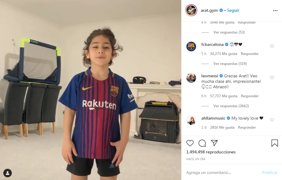 Este video llegó a Messi, quien no dudo en contestar y señalar su talento. “Gracias Arat!! Veo mucha clase ahí, impresionante! Abrazo!!”, asimismo el FC Barcelona también reaccionó con algunos emojis a este video.