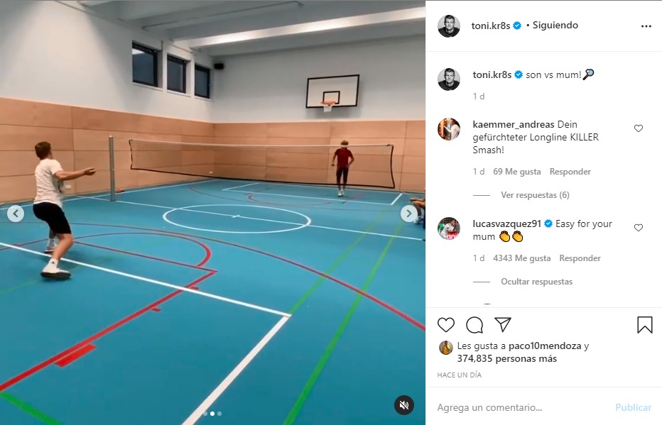 El futbolista alemán compartió en sus redes sociales una serie de videos de un partido de bádminton que sostuvo con su madre durante el periodo vacacional por las fiestas decembrinas, Kroos colocó en Instagram: "¡Hijo vs mamá!".