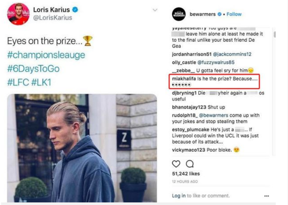 Tras su desafortunada actuación en la Final de la Champions, en donde errores suyos permitieron dos de los tres goles del Real Madrid en el partido, mismos que marcaron diferencia para que los merengues ganaran su décimo tercera Copa de Europa, Loris Karius fue 'consolado' por Mia Khalifa en de redes sociales.