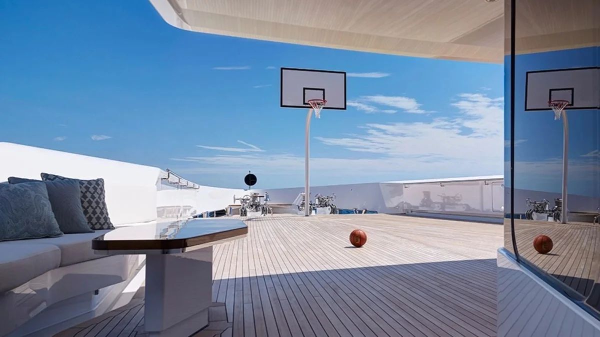 Esta lujosa embarcación cuenta con su propia cancha de basquetbol, gimnasio y varias áreas comunes con distintos fines desde comer hasta tomar el sol, además, cuenta con habitaciones para pasar la noche.