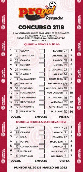 Ganadores del Progol lunes 21 de marzo