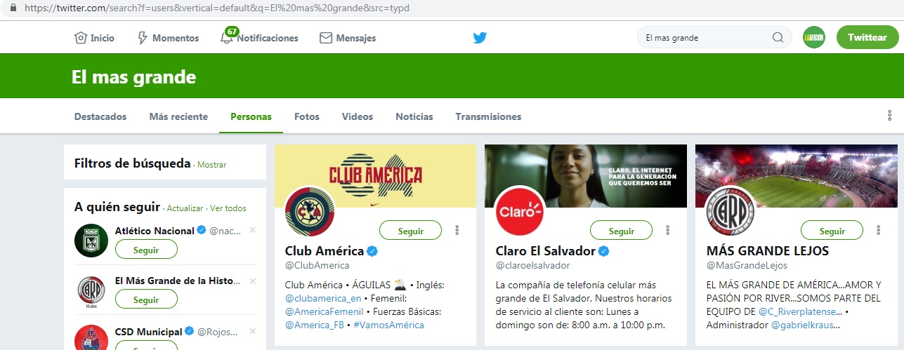 América tampoco está exento de éste tipo de búsqueda, al escribir “el más grande” aparece la cuenta oficial de las Águilas como primera opción.