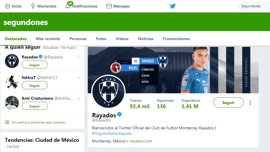 No es el único equipo del norte que aparece con este tipo palabras, usuarios descubrieron que si escribes “segundones” en la barra de búsqueda te aparecerá la cuenta de Monterrey.