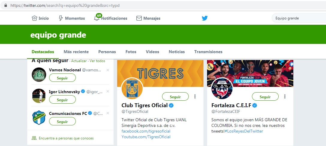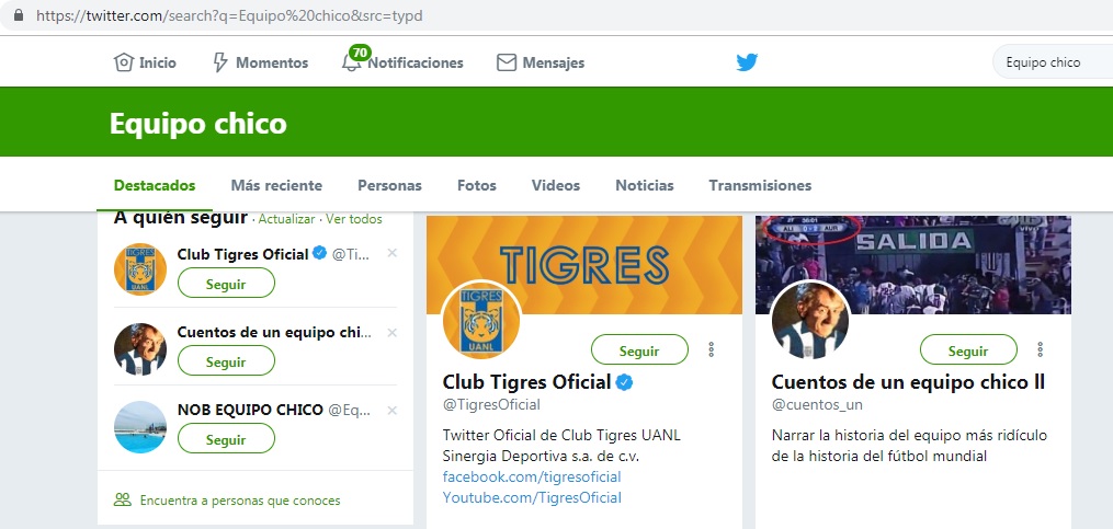 Si buscas “equipo grande” en Twitter te aparecerá la cuenta de Tigres, sin embargo también aparece si tecleas “equipo chico”