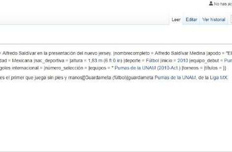Luego de una mala actuación de Alfredo Saldívar en la derrota de Pumas ante América en las Semifinales de la Liga MX, el perfil del portero en Wikipedia fue editado a modo de burla.