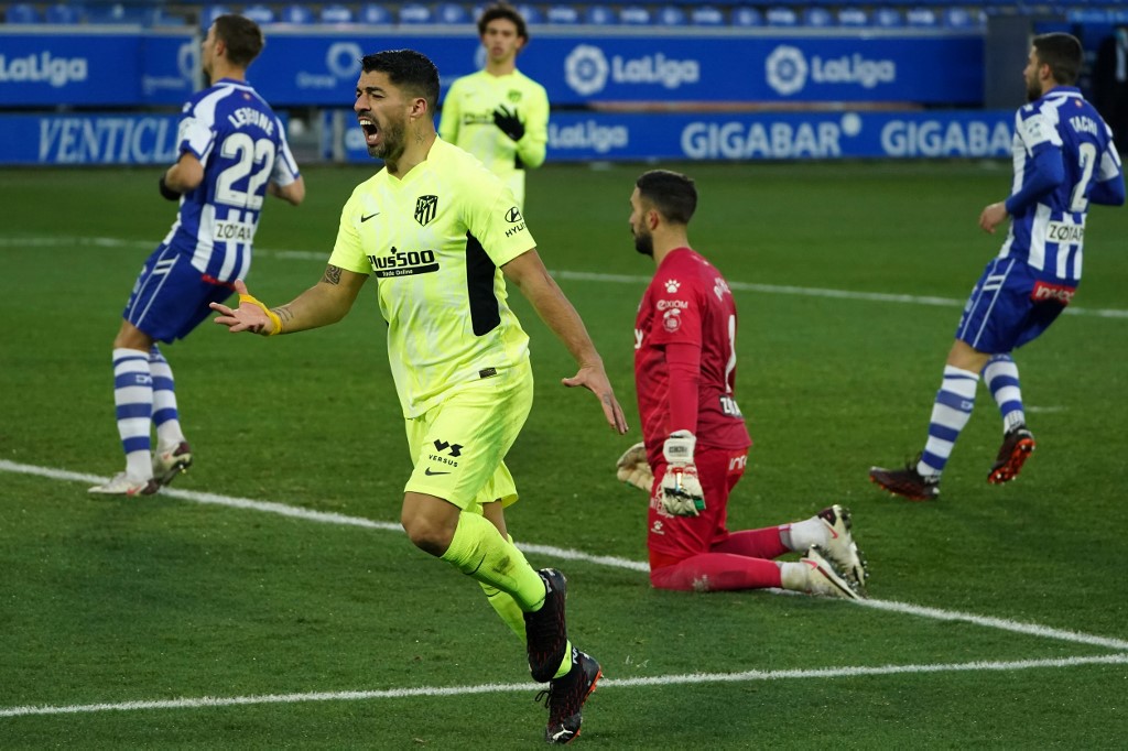 El uruguayo Luis Suárez volvió a aparecer y salvó al Atlético de Madrid al marcar el tanto del triunfo en el minuto 90 (1-2) ante el Deportivo Alavés que consiguió igualar el marcador con diez jugadores tras la expulsión de Víctor Laguardia.