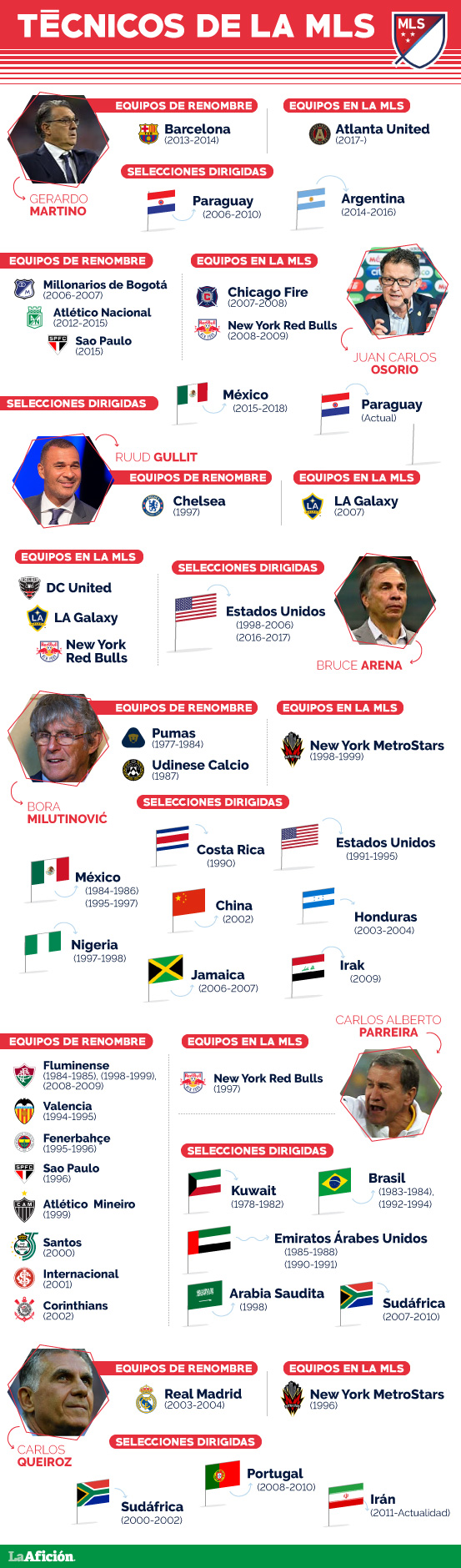 Sin embargo, la Major League Soccer también se ha destacado por tener, o haber tenido, grandes figuras en los banquillos de sus diferentes equipos. Y así ha vuelto a suceder, ahora con la llegada de Matías Almeyda, quien se une a este selecto grupo de grandes estrategas que han llegado anteriormente al balompié de Estados Unidos.
