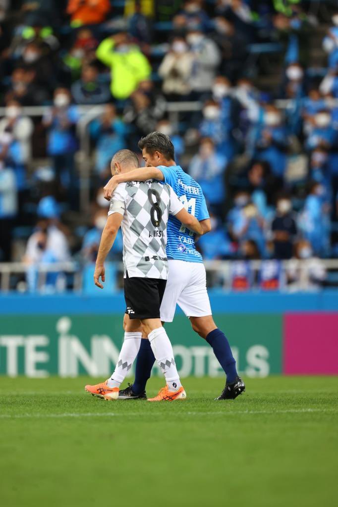 Andrés Iniesta jugó todo el partido en la Liga de Japón, mientras que Kazuyoshi Miura ingresó de cambio al minuto 87 y tuvo la fortuna de estar en el campo cuando se anotó el gol de la victoria del Yokohama, al 90+1'.