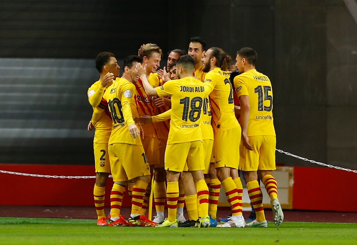 El Barcelona ganó la Copa del Rey 2020-2021 con una goleada 4-0 sobre el Athletic de Bilbao, que perdió su segunda final en este torneo en un plazo de apenas dos semanas, a lo que contribuyó esta vez Lionel Messi con un doblete.