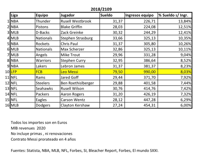 Dentro del estudio, Iván Cabeza ha comparado el salario del 10 con los sueldos de otras estrellas del deporte y los ingresos de cada equipo dando como resultado que el futbolista no lidera dicha comparativa.