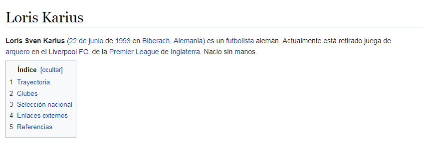 Durante algunos minutos, en el portal de Wikipedia, en la descripción biográfica de Loris Carius, se afirmó que el arquero alemán había nacido sin manos.