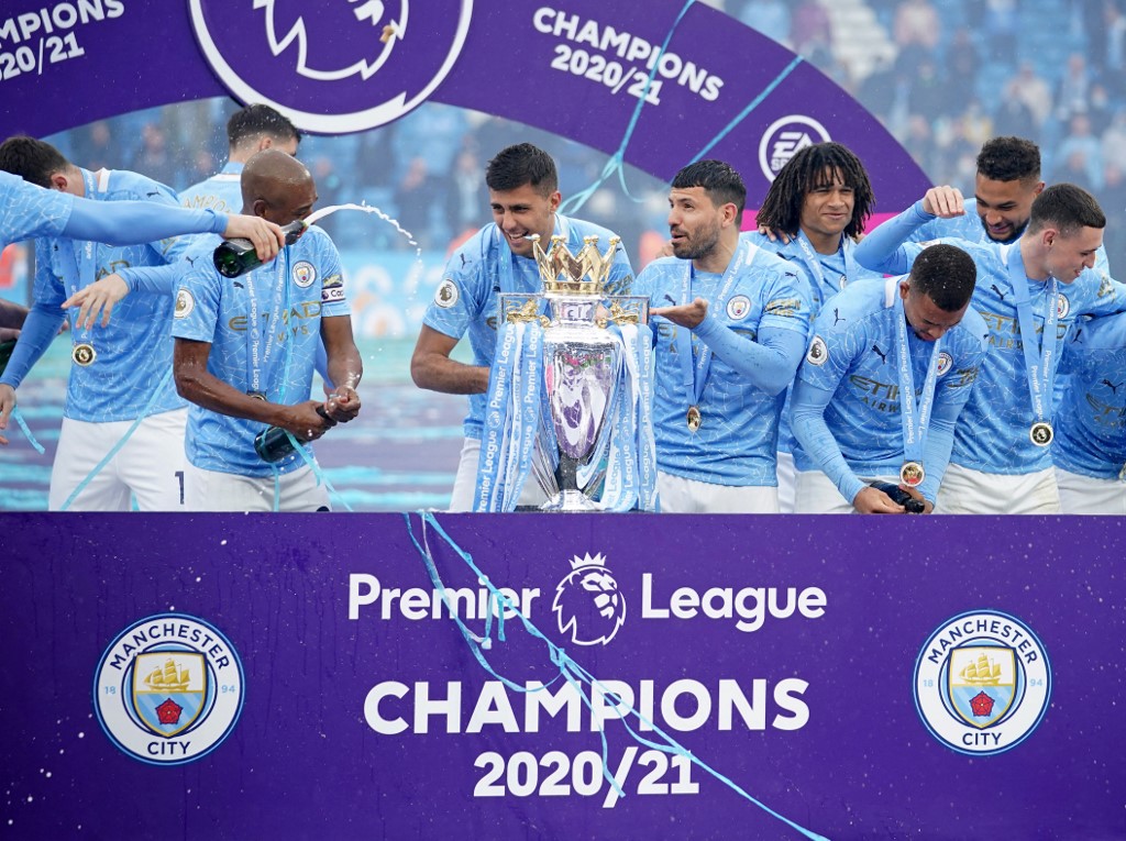 En una tarde de fiesta en Mánchester, el City fue recibido con un pasillo de honor por el Everton por su triunfo en la Premier League, presentando el trofeo a los espectadores presentes en el estadio, por primera vez en 14 meses, aunque en una presencia muy limitada.