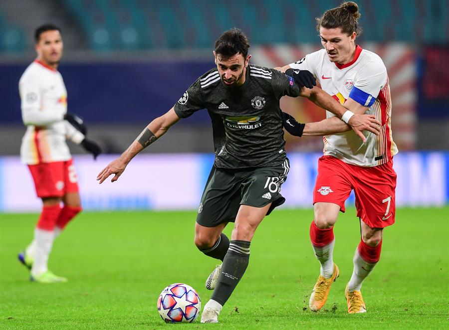 El español Angeliño (2), el maliense Amadou Haidara (13) y el joven holandés Justin Kluivert (68) parecieron dejar sentenciado el partido para los alemanes, aunque los goles del portugués Bruno Fernandes de penal (80) y del francés Paul Pogba (82) hicieron creer en el milagro de la clasificación a los ingleses, que quedan eliminados de la Champions y continuarán compitiendo en la Europa League.