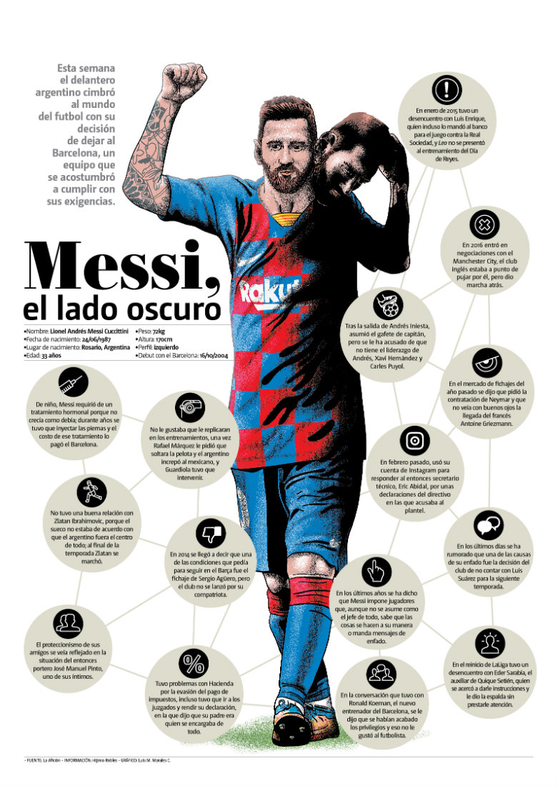 20 años de su vida ha pasado Lionel Messi en Barcelona, llegó con 13 años, firmó su contrato en una servilleta y ha anunciado en un burofax su deseo de marcharse.