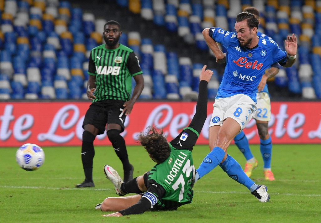 Tras el gol de Locatelli, el Nápoles apretó con fuerza y rozó dos veces el empate, primero con el belga Dries Mertens y luego con el griego Kostas Manolas, al que fue anulado el posible empate por fuera de juego en el 90.