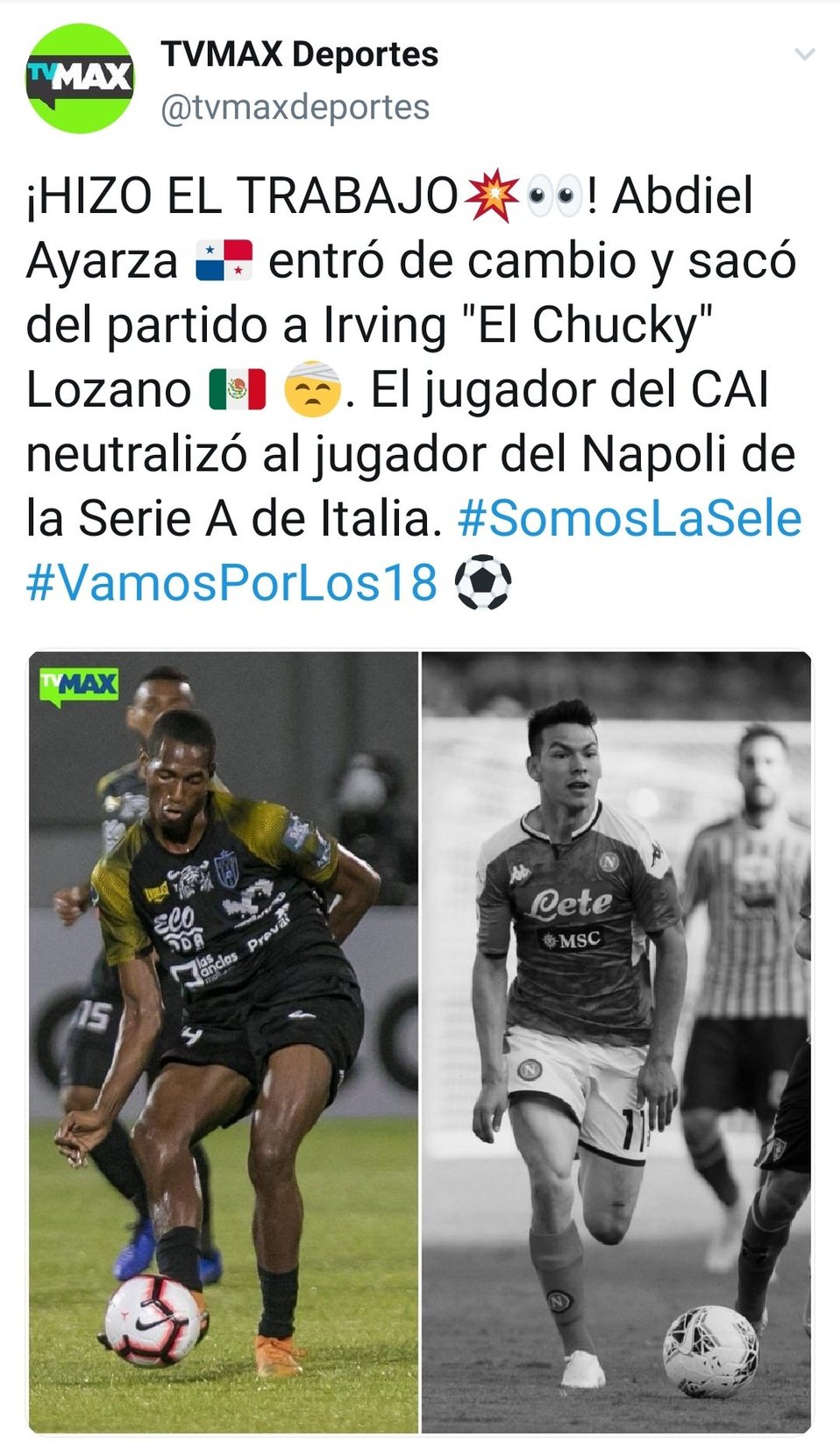 El portal de noticias deportivo TVMAX Panamá alabó la artera falta de Ayarza sobre Lozano con un post -que posteriormente borraron- que decía "¡Hizo el trabajo!" señalando que el futbolista del Club Atlético Independiente de La Chorrera había logrado detener al elemento más peligroso del cuadro azteca.
