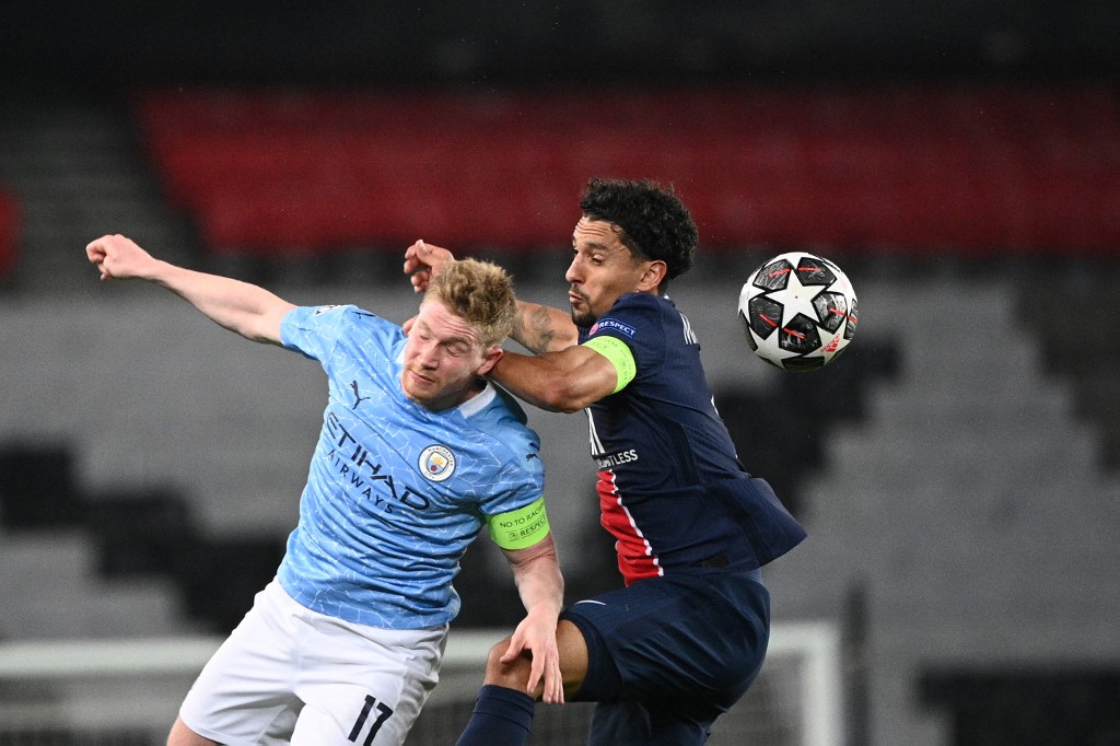 El tanto llegó al cuarto de hora a balón parado, el primero que conceden los de Guardiola esta temporada, en un gran saque de córner de Di María, que suma ya cinco asistencias en Europa, impecablemente rematada por Marquinhos, tras un desajuste defensivo del City, que logró su tercera diana.