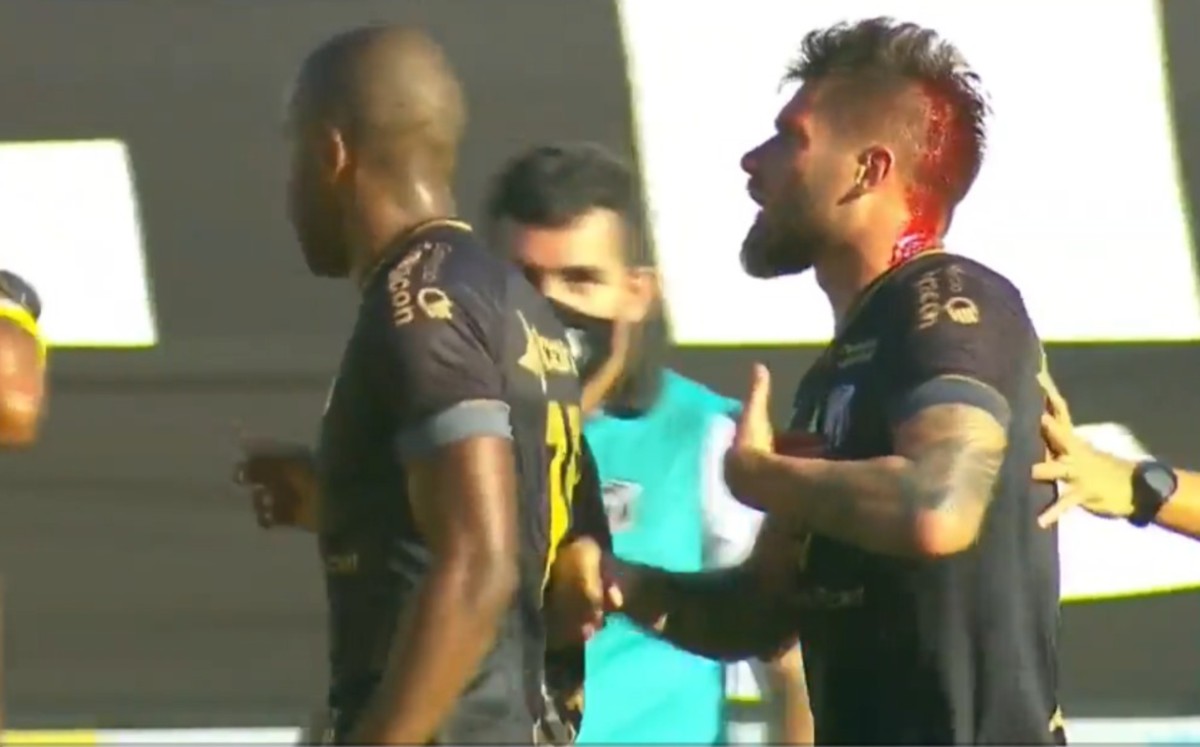 Con una patada karateka, Verissimo intentó despejar el balón pero en el acto pateó a Sobis en la cabeza con los tachones, generando que el atacante cayera al suelo con señales de dolor.
