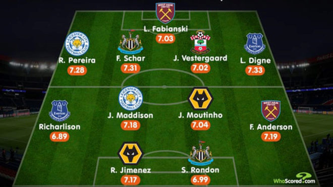 Con una puntuación de 7.17, Jiménez se perfila como delantero de este equipo especial, gracias a sus 12 goles y siete asistencias. Dicho listado no incluye a jugadores de los primeros seis clasificados de la liga: Manchester City, Liverpool, Tottenham, Arsenal, Manchester United y Chelsea.