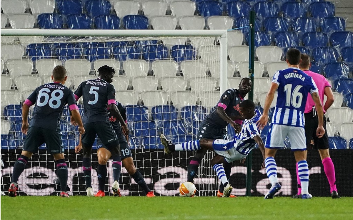 La Real optó por esperar en la segunda mitad a un equipo de Gennaro Gattuso que estaba mucho más apremiada con su derrota ante el AZ Alkmaar y que en encontró el premio que buscaba con un disparo de Politano desde fuera del área, que contó con la colaboración de Sagnan al desviar un poco la trayectoria.