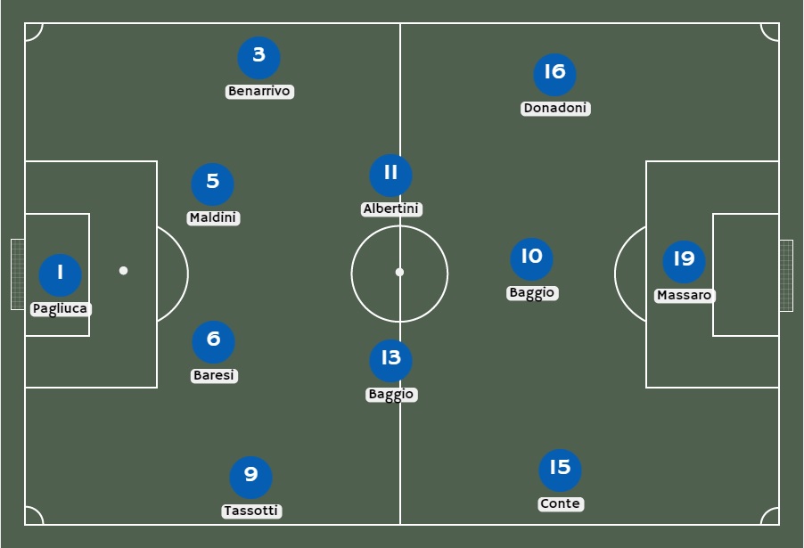 El Mundial de Estados Unidos 1994 representaba para Italia una cita para curar las heridas causadas por la enorme decepción luego de no haber logrado su cuarto título del 1990, esto cuando la Copa del Mundo se jugó en su territorio.