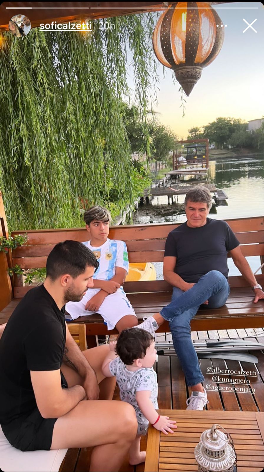 En redes sociales, Sofía Calzetti, pareja de Agüero, compartió un par de historias en las que mostró que ambos se encuentran en tierras argentinas en estos momentos complicados para el ex jugador, así como también Benjamín Agüero, hijo del Kun, los acompaña.