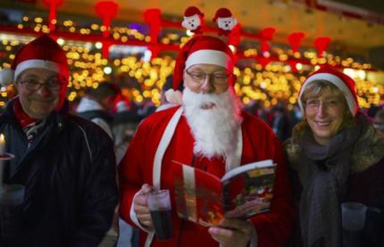 Gorros, velas y música; así es como celebran la navidad los hinchas del Unión Berlín –equipo de la Bundesliga- en el estadio Stadion An Der Alten Fösterei.