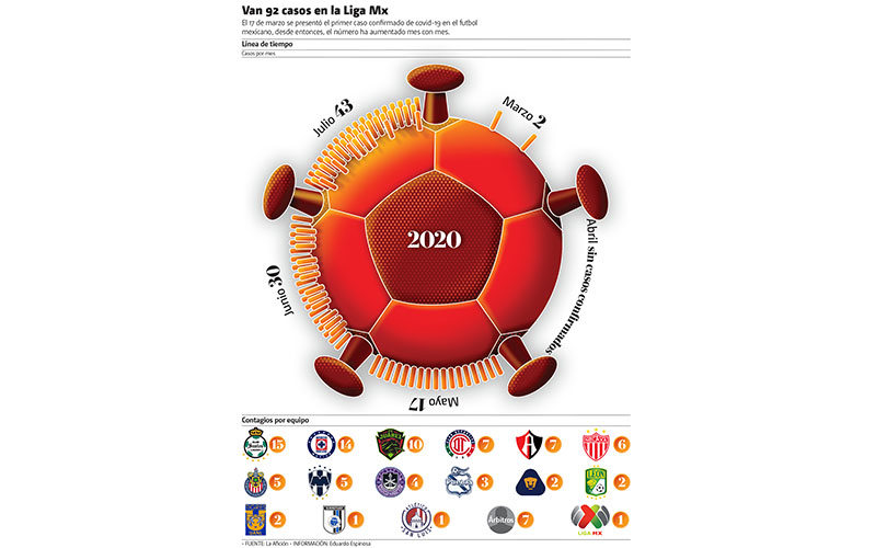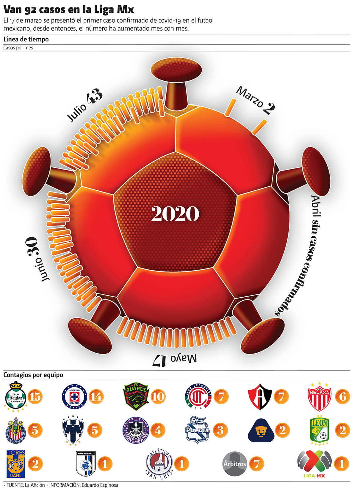 Ésta es una llamada de atención para el futbol mexicano, que deberá tener las alarmas encendidas, pues la emergencia sanitaria no ha cedido y aún existe un riesgo muy alto de la propagación del coronavirus. La muestra es este último mes, en el que se han registrado 43 casos, que sumados a los de meses anteriores arroja ya un total de 92 personas infectadas en la Liga Mx desde el comienzo de la pandemia.