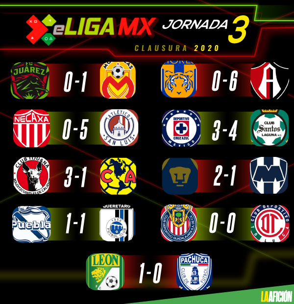 Resultados de la jornada 3 del torneo FIFA 20 de la Liga MX