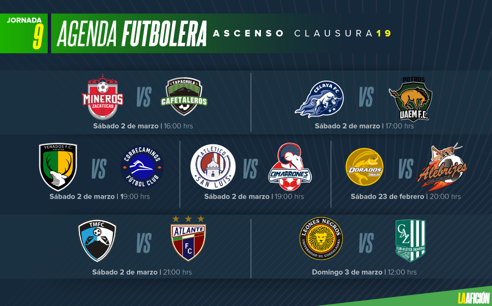 Este fin de semana arranca la jornada 9 del Ascenso MX en el torneo Clausura 2019, por lo que te traemos los partidos, fechas y horarios para que no pierdas detalle de ningún encuentro.