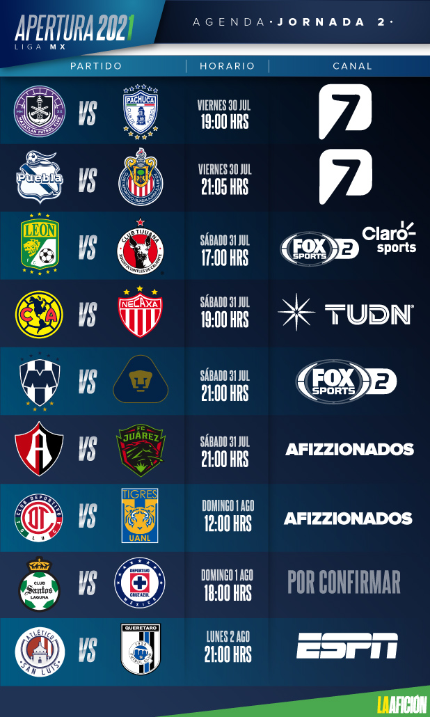 Este es el #Previo de la segunda fecha del Torneo:#LigaBBVAMX ⚽ pic.twitter.com/UrV2rzaHD5