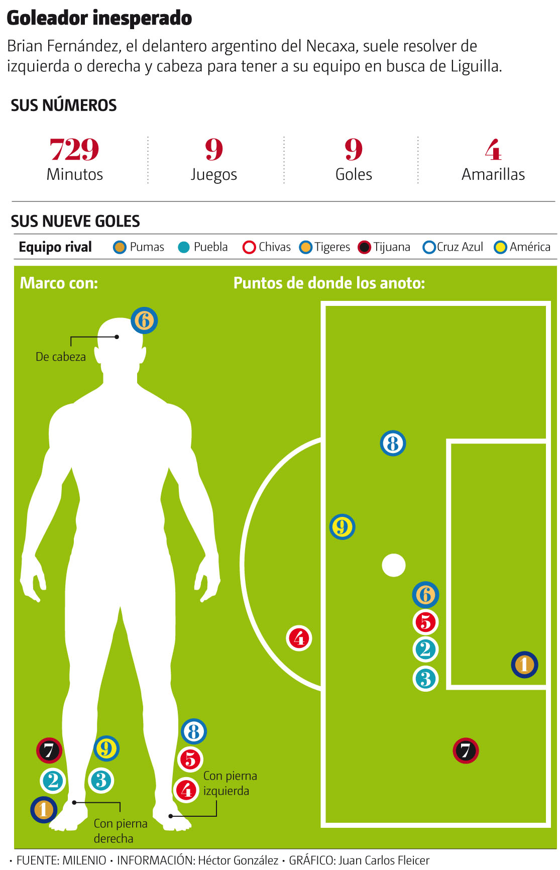 Es más, la productividad de Brian supera la de cinco equipos de la Liga Mx: Cruz Azul (8), Puebla (8), Morelia (8), Querétaro (6) y Veracruz (2), e iguala la de otros dos: Toluca (9) y Pumas (9). En pocas palabras, Fernández tiene o supera los registros goleadores de un tercio de los clubes de la Primera División.