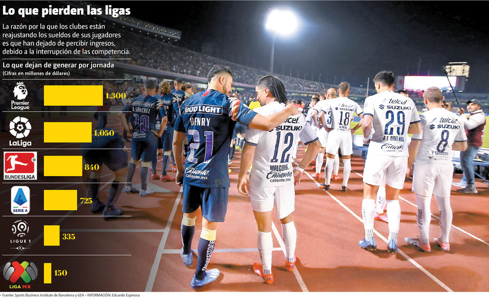 En competiciones como la Premier League de Inglaterra y LaLiga de España se rebasa los mil millones de dólares el dinero que deja de ingresar por todos los rubros; la Bundesliga (Alemania), la Serie A (Italia) y la Ligue 1 (Francia) siguen en esta lista.