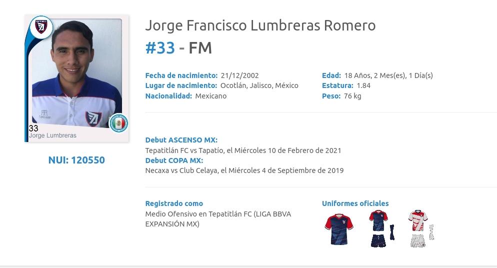 Jorge Lumbreras Romero / Tepatitlán / Medio ofensivo
