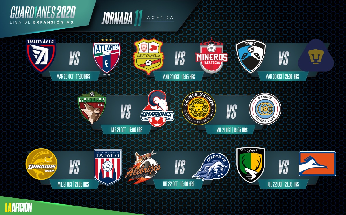 El Guard1anes 2020 de la Liga de Expansión ha llegado ya a su jornada 11 y esta fecha arrancará este martes en punto de las 17:00 horas con un duelo entre equipos de la parte alta de la tabla: Tepatitlán y Atlante chocarán en el Estadio Tepa Gómez.