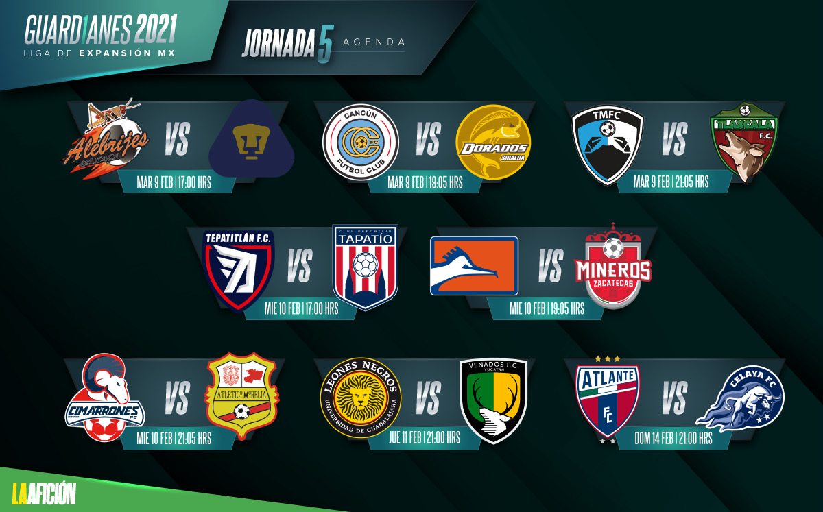 Este martes dará inicio una nueva jornada en el Guardianes 2021 de la Liga de Expansión con el duelo entre Alebrijes de Oaxaca y Pumas Tabasco, que tendrá lugar en el Instituto Tecnológico de Oaxaca en punto de las 17:00 horas y al que los auriazules llegan mejor posicionados al ocupar la quinta posición en la tabla.