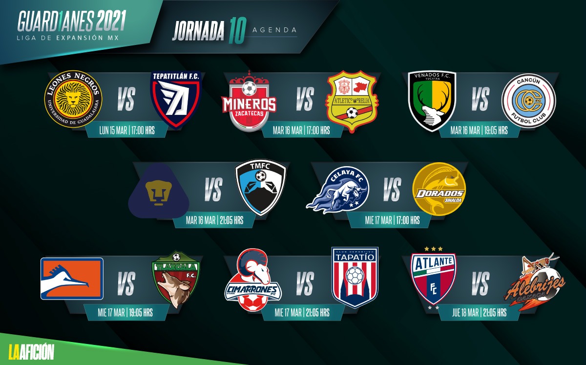 La Liga de Expansión MX no se detiene y este lunes 15 de marzo iniciará la jornada 10 del Guard1anes 2021 con el enfrentamiento entre Leones Negros de la U. de G. y Tepatitlán en punto de las 17:00 horas en el Estadio Jalisco.