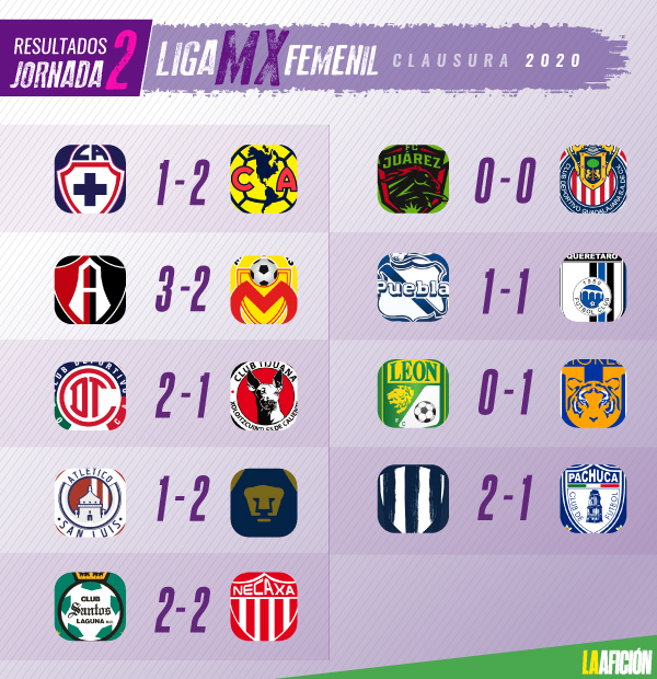 Aquí te dejamos todos los resultados de la jornada 2 del Clausura 2020 en la Liga MX Femenil.