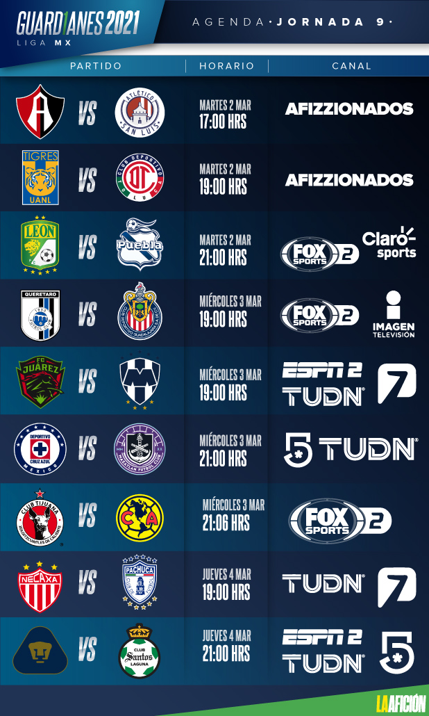 Horarios y dónde ver la jornada 9 del Guard1anes 2021 de la Liga MX