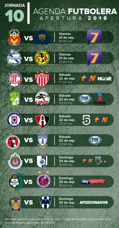 Arranca la jornada 10 de la Liga MX y aquí te dejamos las fechas, horarios y dónde ver los canales de transmisión de todos los partidos, donde esta semana resalta el Clásico Regio entre Tigres y Monterrey.